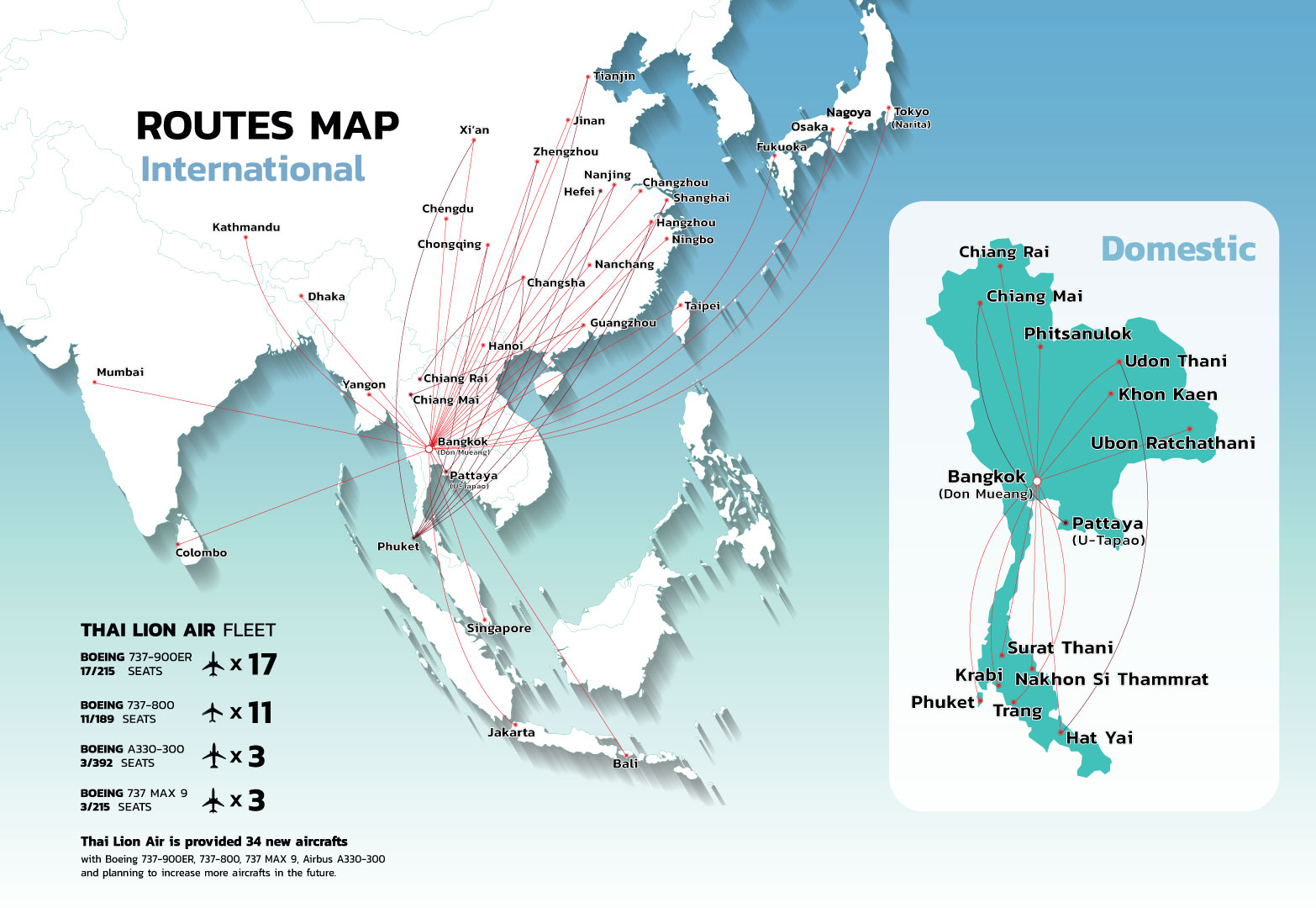 The most popular and convenient way to get to Chiang Mai is to fly here (Airport code: CNX). Depending on your country and departure airport, you may be able to find a direct flight to Chiang Mai, or take a connecting flight from Bangkok to Chiang Mai. The flight from Bangkok to Chiang Mai takes around 1.5 hours, and depending on the time of year and how far in advance you book, can cost less than $50 each way. The best part of flying to Chiang Mai is that Chiang Mai International Airport is only 10-15 minutes drive away from the venue. An example route map for both international and domestic flights in Thailand is shown below.