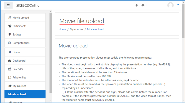 ( _ ). If the number after the period is one digit, please add a zero before the number. For example, if the speaker’s presentation number is SaAT39.2 and the video format is mp4, then the video file name must be SaAT39_02.mp4.